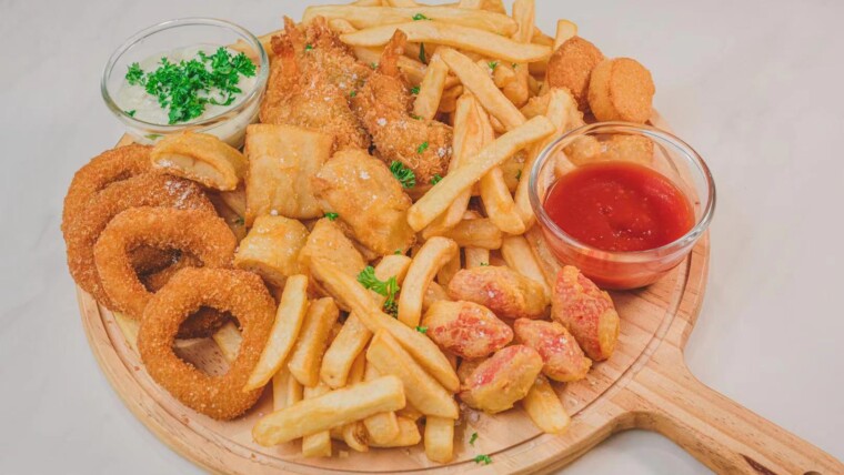 Prawns, calamari, scallops, mini crab sticks …..
